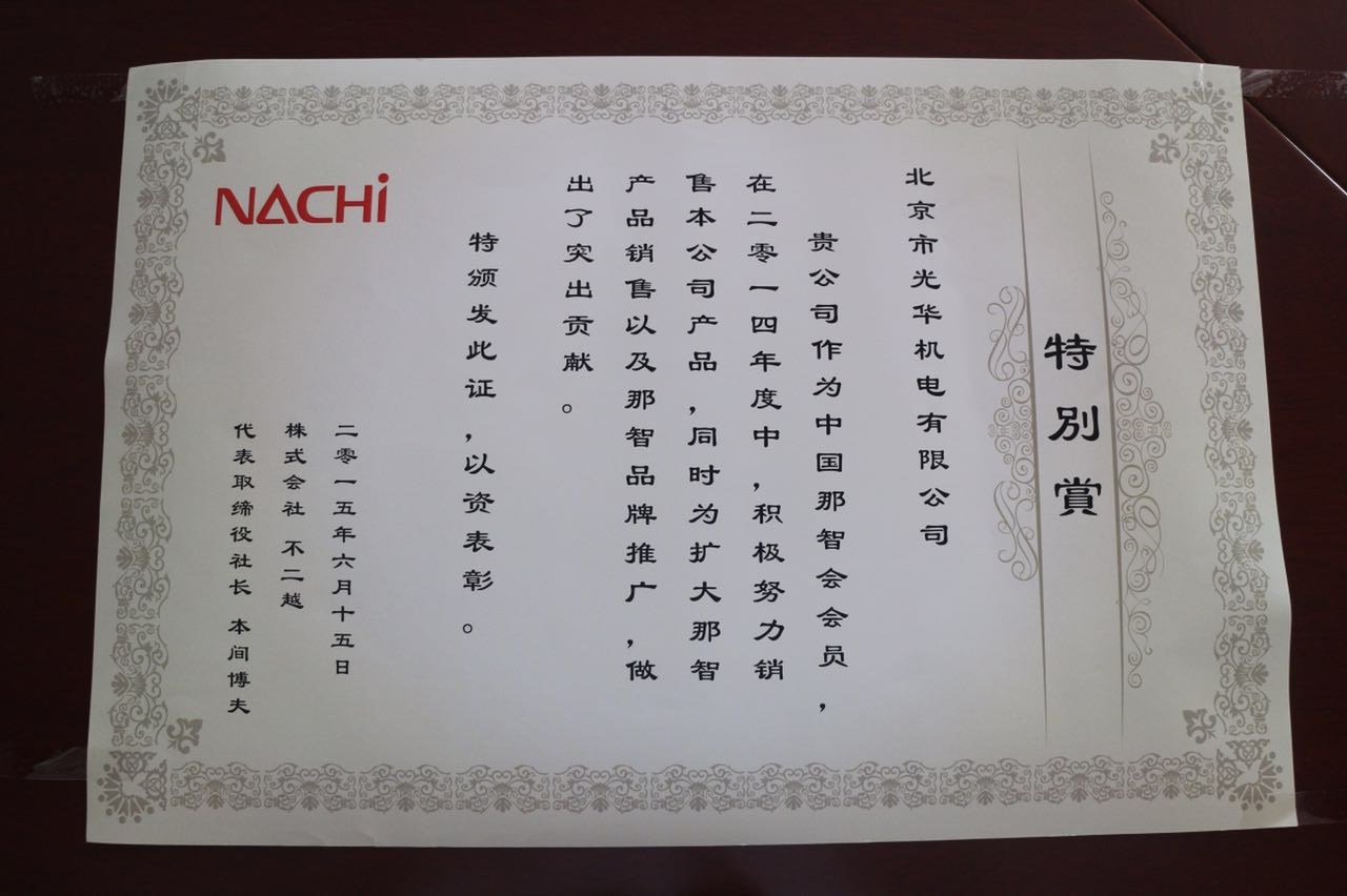 隨著中國工業智能化發展,我司利用自身客戶資源,自2014年起,全面代理日本株式會社不二越 NACHI品牌:液壓設備、切削刀具、工業機器人等產品。成為NACHI 品牌綜合代理商,促使光華機電向多元化產品結構發展。